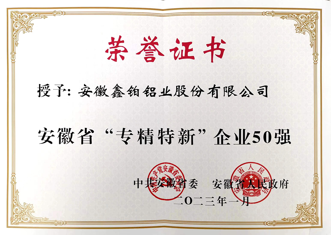 安徽省“专精特新”企业50强