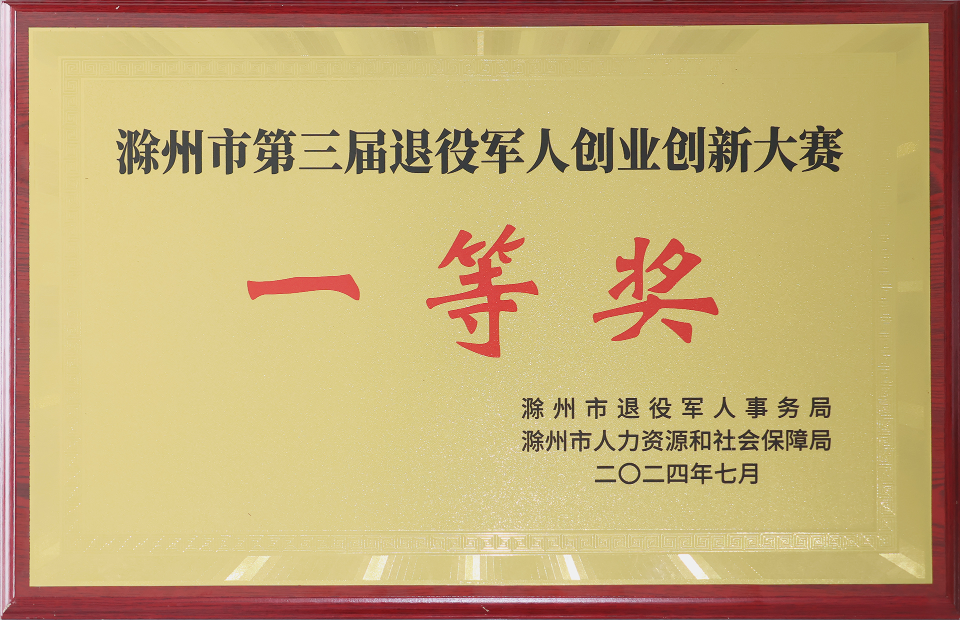 滁州市第三届退役武士创业立异大赛 一等奖